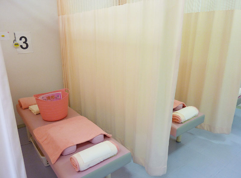カーテンで仕切った個室で施術致します。(カーテンを開けながらでも施術出来ます)